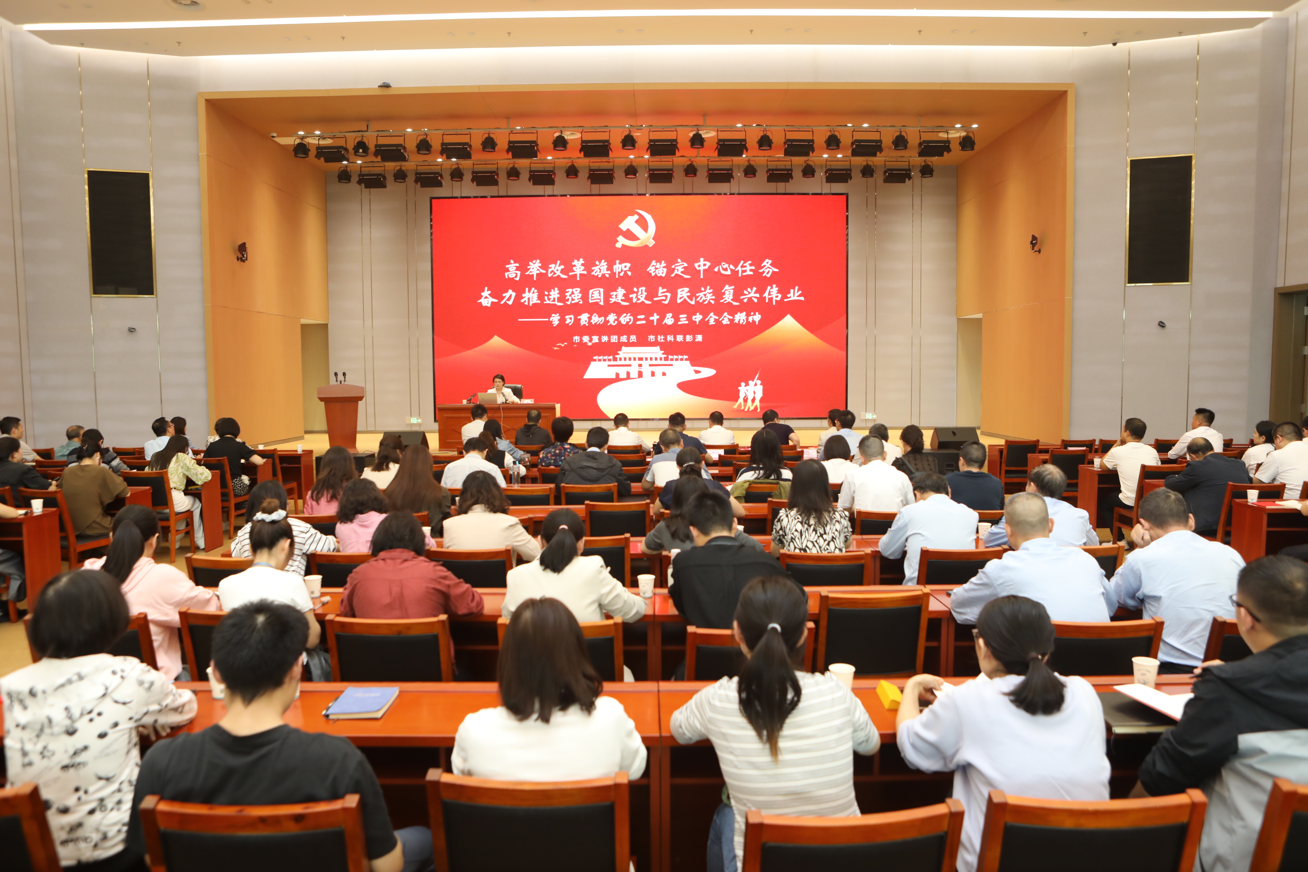 彭潇以《高举改革旗帜 锚定中心任务 奋力推进强国建设与民族复兴伟业》为题,从全面把握三中全会的主要精神、深刻把握三中全会《决定》提出的进一步全面深化改革重大举措两个方面,对三中全会精神进行系统阐述和详细解读,引导党员干部深刻领会全面深化改革和中国式现代化建设的新思想、新观点、新论断,进一步把思想和行动统一到全会精神上来。
