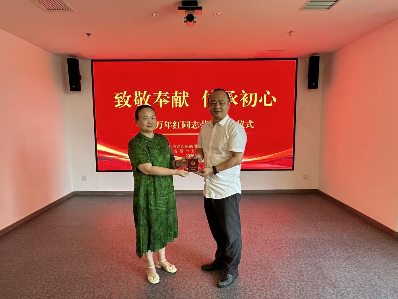 会上,黄英同志代表单位对万年红同志为宜昌疾控事业的辛勤付出与贡献表示感谢,希望她永葆“退休不褪色、离岗不离心”的本色,继续关心支持疾控事业,发挥“银发力量”。仪式最后,胡池同志为其颁发退休证书、赠送鲜花及纪念品。此次荣誉退休仪式,是宜昌市疾控中心落实干部荣誉退休制度的生动实践,让老同志感受到组织的温暖与关怀,同时激励全体职工以先进为榜样,传承爱岗敬业、担当奉献的优良传统,为疾控事业高质量发展凝聚奋进力量。